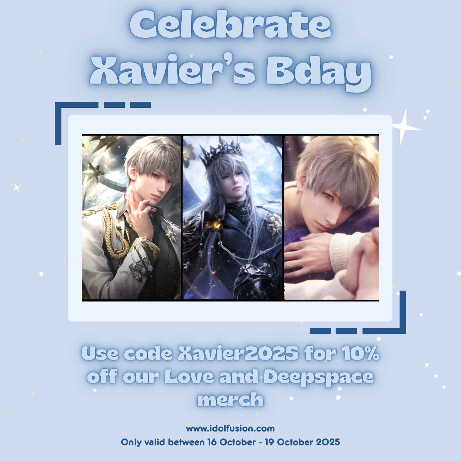 Celebrate Xavier's birthday with us and use code XAVIER2025 for 10% of Love and Deepspace merch between 16 October - 19 October.